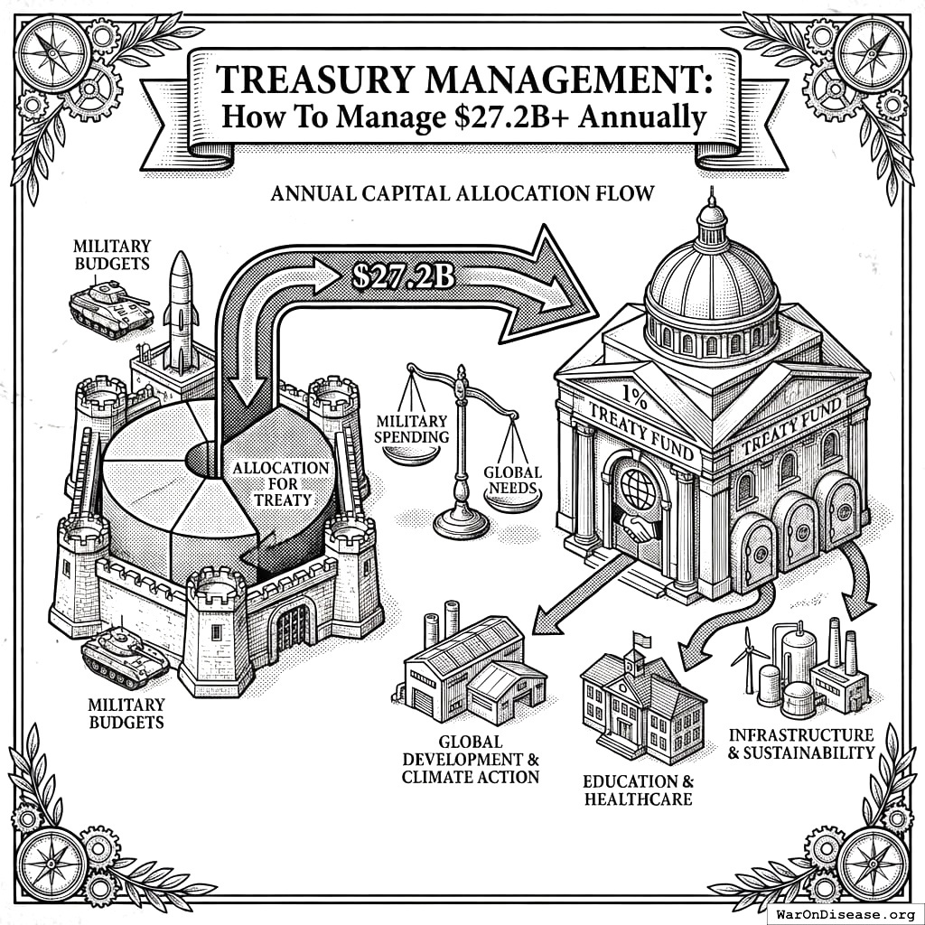 Once the treaty passes, $27.2B flows annually from “how to kill people” budgets into “how to stop people dying” budgets. This is the part where your financial plan stops being a financial plan and starts being a money volcano that erupts on schedule, forever.