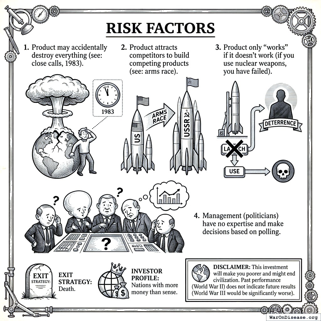 - Success condition: Only “works” if it is never used (if you use nuclear weapons, you have already failed).
