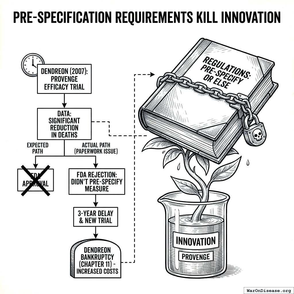 - Pre-specification kills serendipity: Must predict what drug cures before testing