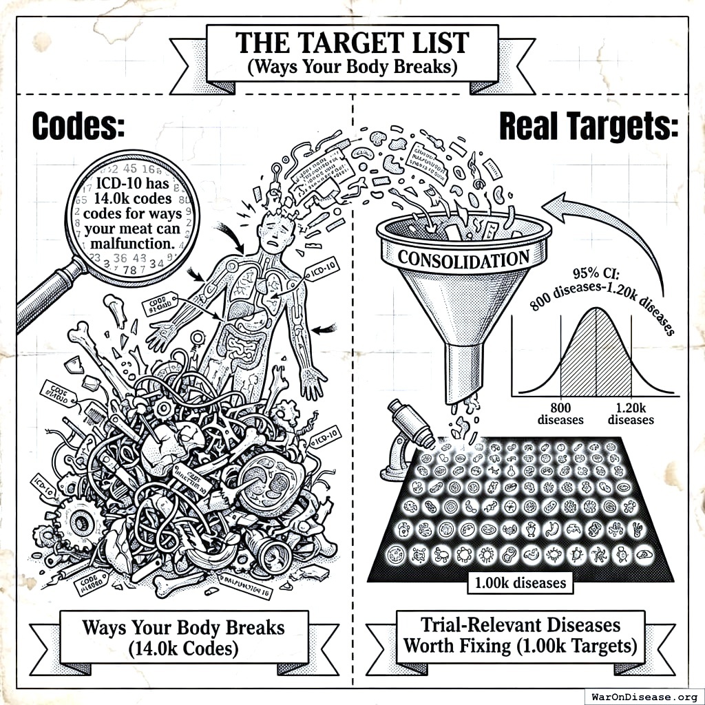 - Real Targets: After consolidation, 1 thousand diseases trial-relevant diseases actually worth testing drugs against.