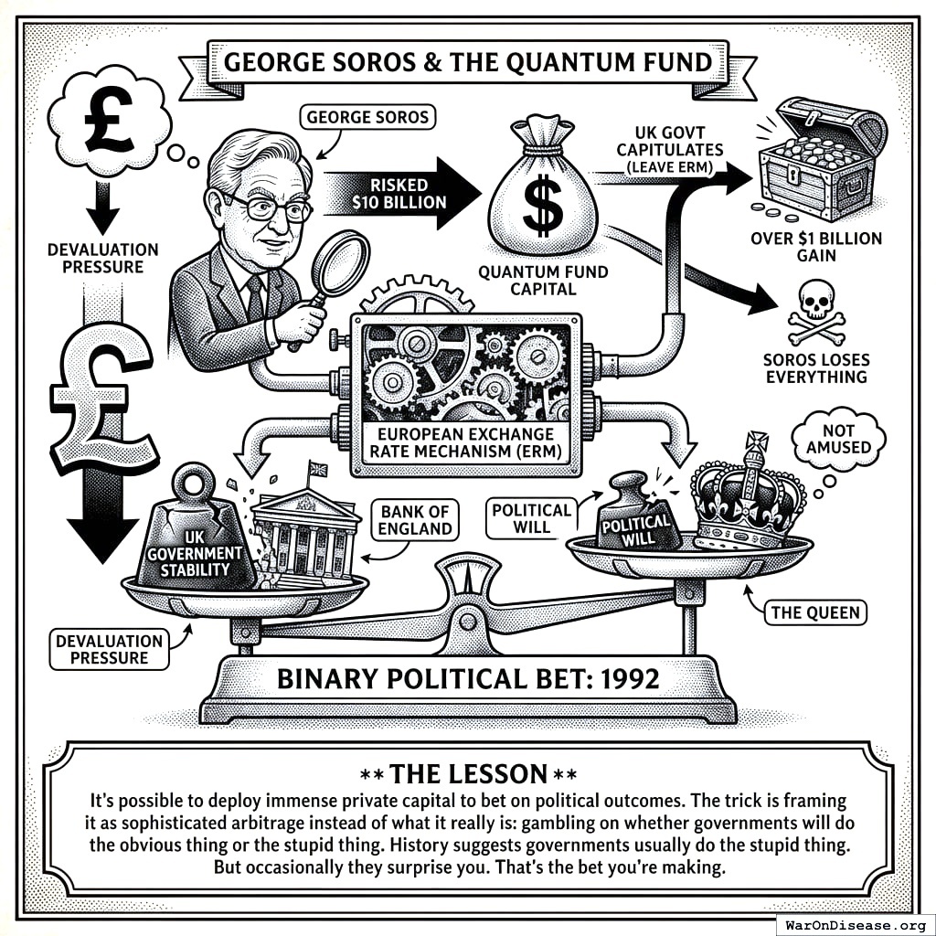The Lesson: You can deploy immense private capital to bet on political outcomes. The trick is framing it as sophisticated arbitrage. What it really is: gambling on whether governments will do the obvious thing or the stupid thing.