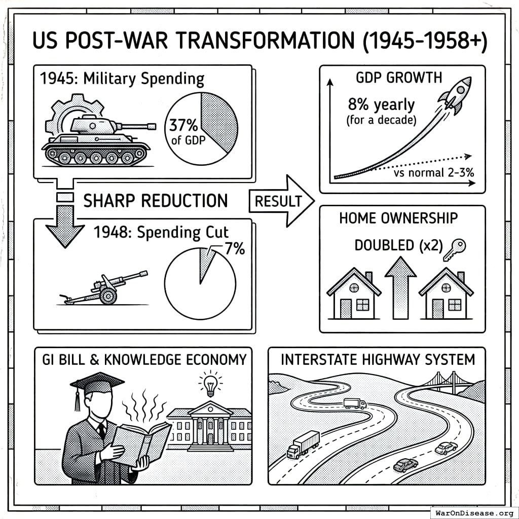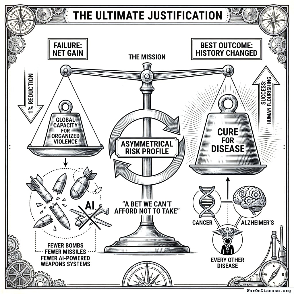 war-on-disease, 1-percent-treaty, medical-research, public-health, peace-dividend, decentralized-trials, dfda, dih, victory-bonds, health-economics, cost-benefit-analysis, clinical-trials, drug-development, regulatory-reform, military-spending, peace-economics, decentralized-governance, wishocracy, blockchain-governance, impact-investing