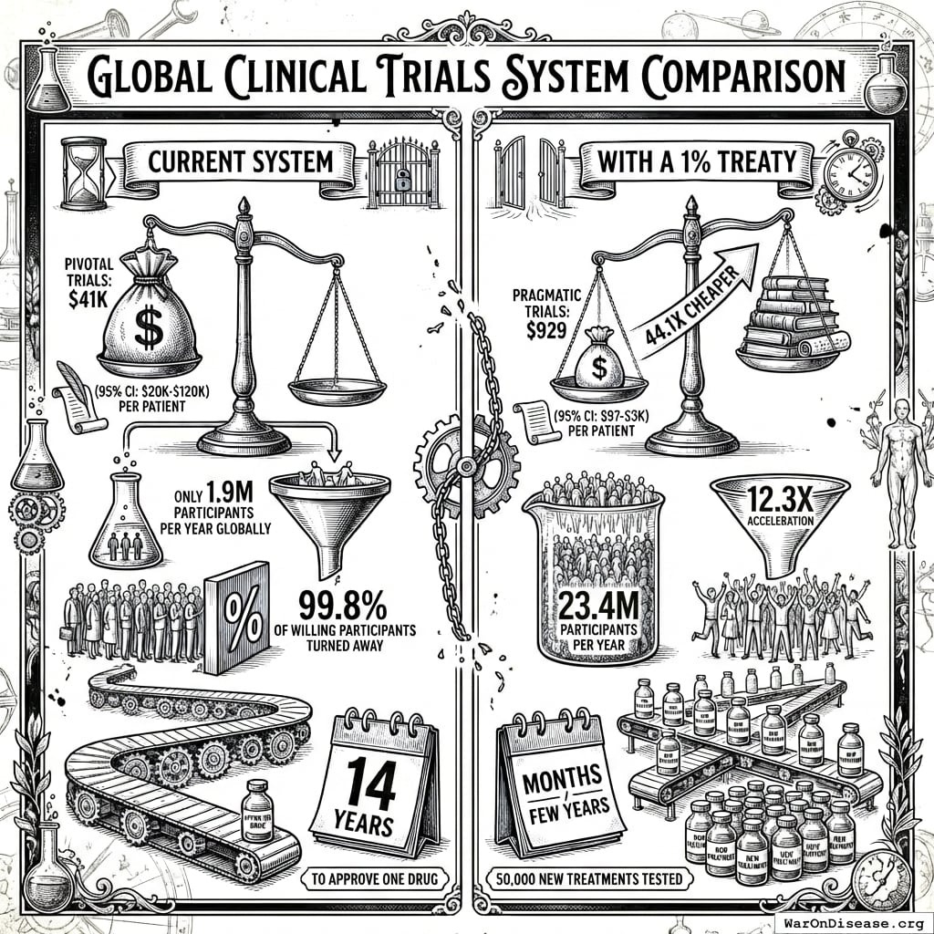 Only 1.9 million participate in drug trials annually out of 2.4 billion people with chronic disease. With a 1% treaty + a decentralized FDA: