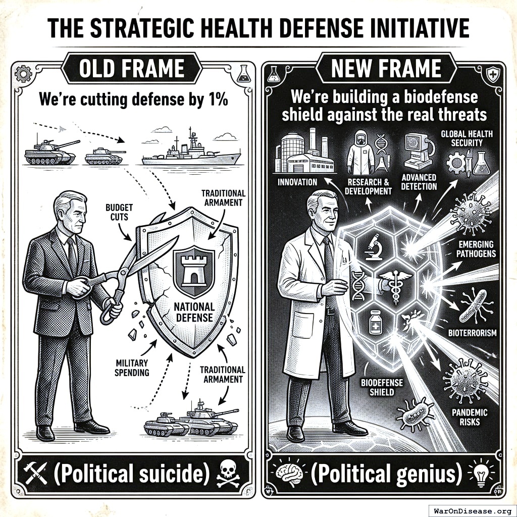 The same idea looks stupid when called ‘defense cuts’ and brilliant when called ‘biodefense investment.’ Politics is just marketing for grownups.