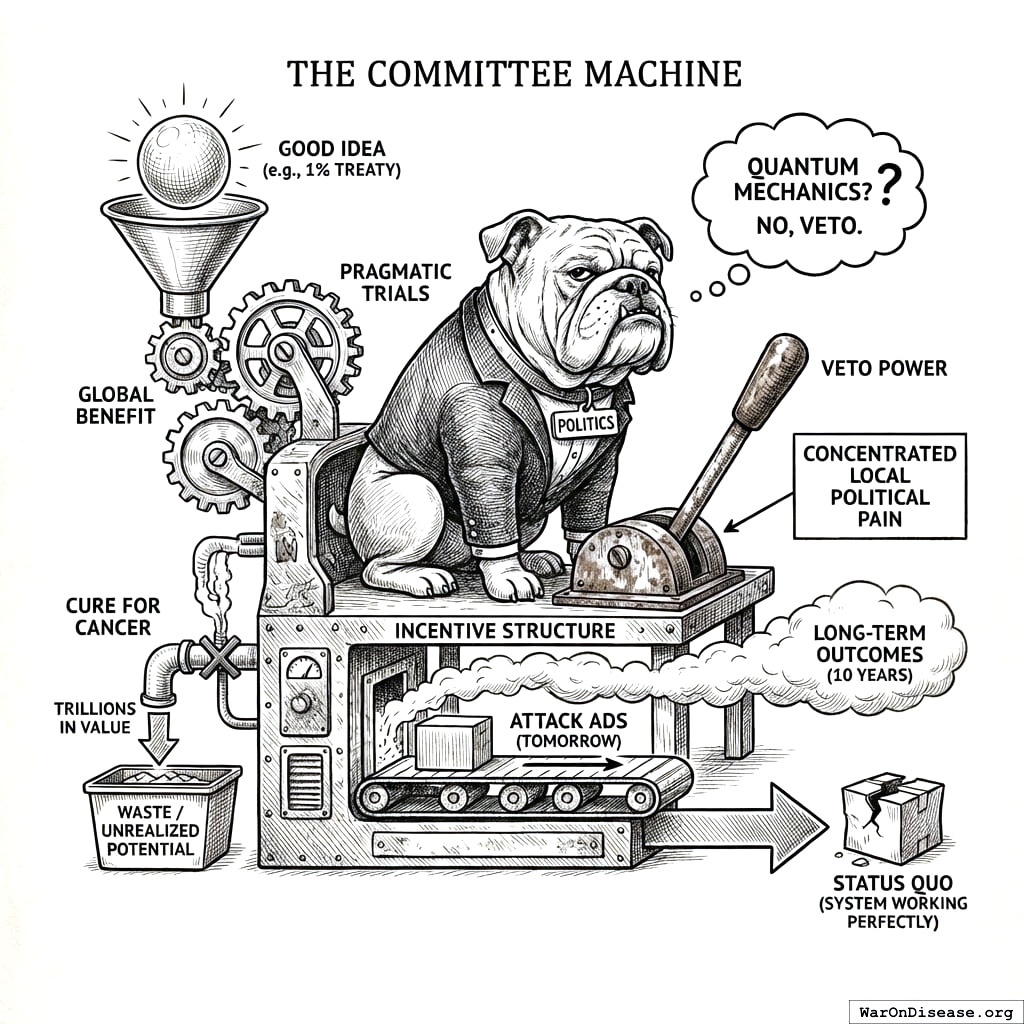 Your 1% Treaty136 isn’t constrained by physics, biology, or money. It’s constrained by politics, which is like being constrained by your dog’s opinion on quantum mechanics, except your dog can veto legislation.