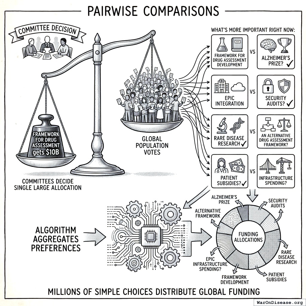Your species is already making brutal tradeoffs. Every extra dollar for nuclear weapon systems is a dollar not spent on pragmatic clinical trials, pandemic defense, transit, housing, or anything else. Your current institutions hide that fact by slicing the budget into committees, subcommittees, and jargon until nobody can see the tradeoff clearly enough to object. Wishocracy drags it back into daylight.